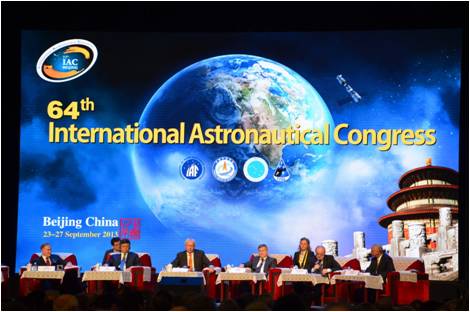 2013年9月23日至27日,第64屆國際宇航大會(huì)在國家會(huì)議中心隆重召開。國家副主席李源潮代表習(xí)近平主席和中國政府致詞,全國政協(xié)副主席韓啟德出席,中國航天科技集團(tuán)公司許達(dá)哲董事長主持開幕式,來自美國、歐洲、俄羅斯、日本、中國、印度的航天局長齊聚一堂,74個(gè)國家和地區(qū)的3600余名航天精英參會(huì)。